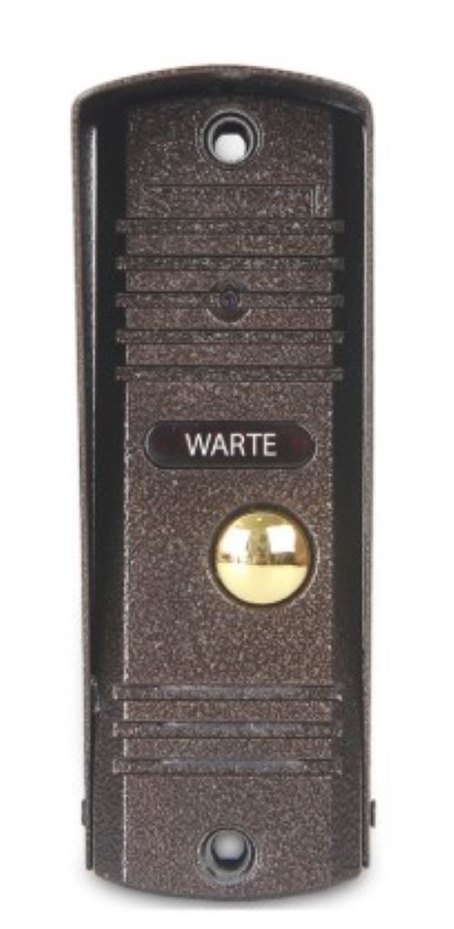 Вызывная панель видеодомофона WARTE-DP-01 PAL медь(АККОРД 90) высокого разрешения 800 твл для любого классического видеодомофона WARTE и их аналогов (четырех проводное соединение). Угол обзора 90 градусов. С уголком и козырьком. Управление электромех. и электромагнит. замками и кнопкой выхода. Регулировка аудио. Улучшенный аудиоканал для эксплуатации при высоком уровне шума. 122х41х24мм
